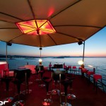 Στον εξωτερικό χώρο, οι άνετοι καναπέδες και οι πολυθρόνες βρίσκονται ακριβώς πάνω από τη θάλασσα και τα βράχια, δίνοντας μια αίσθηση ελευθερίας και ταξιδιού.