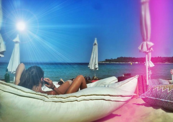 Στην παραλία Ξενία πριν το χωρίο Παλιούρι σε έναν πανέμορφο απομονωμένο κολπίσκο με σήμα κατατεθέν του τις τεράστιες μαξιλάρες και την χρυσή αμμούδα του βρίσκεται το Beach bar Cabana.
