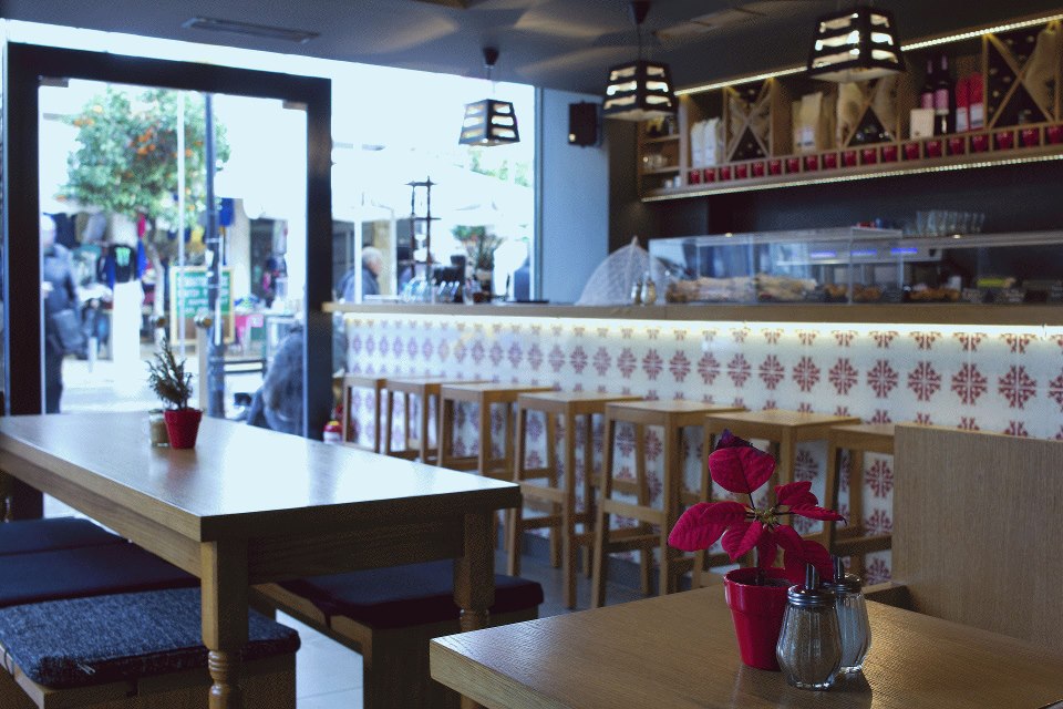 Αποκλειστικές ποικιλίες καφέ, εξαιρετικές ποικιλίες κρασιού (πάνω από 100 ετικέτες) και εμπνευσμένες γευστικές προτάσεις κάνουν τη διαφορά σε ένα λιτό χώρο με μοναστηριακά τραπέζια και την μεγάλη μπάρα με επένδυση από χειροποίητο πλακάκι. Οι επιρροές του χώρου αλλά και του μενού θυμίζουν Ισπανία: tapas που αλλάζουν καθημερινά, brunch και πάρα πολλά συνοδευτικά για το κρασί συμπληρώνουν τον «standard» κατάλογο.