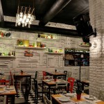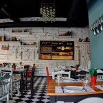 Ένας χώρος φιλόξενος, καλόγουστος με έναν αέρα κομψότητας στην κάθε λεπτομέρειά του. Το πλακάκι σκακιέρα σε συνδυασμό με το βιομηχανικό ταβάνι, αλλά και την εναλλακτική ξύλινη κατασκευή στον τοίχο με τα vintage στοιχεία συνθέτουν ένα σκηνικό καθόλου… φλύαρο.