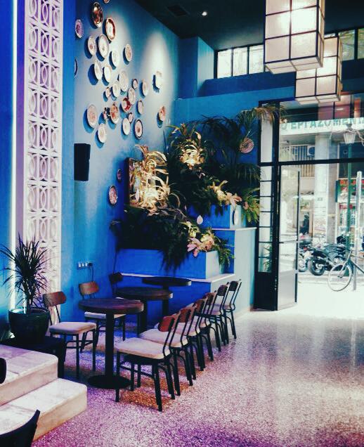 Αντλώντας μάλιστα την έμπνευσή του από την αρχιτεκτονική του κτιρίου της δεκαετίας του ‘50 στο οποίο στεγάζεται (τότε που η Ομόνοια ήταν το εμπορικό κέντρο της Αθήνας ), διαμόρφωσε τον εσωτερικό του χώρο με μπρούτζο, σίδερο και γυαλί, τα κυρίαρχα υλικά της αρχιτεκτονικής εκείνης της εποχής.