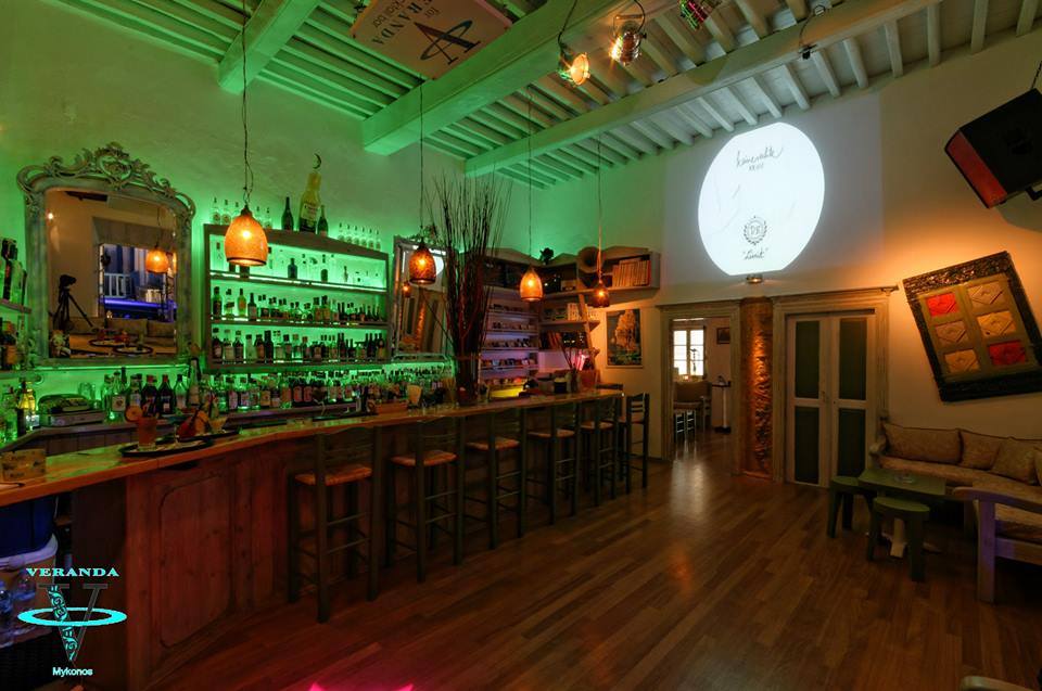Το Veranda Bar βρίσκεται στη Μικρή Βενετία, μία από τις γραφικότερες γωνιές της Μυκόνου. Το μπαρ χρονολογείται από τον 18ο αιώνα και διατηρεί την αρχιτεκτονική ενός παλιού μυκονιάτικου σπιτιού που έρχεται σε απόλυτη αρμονία με την σύγχρονη αισθητική. Το Veranda άνοιξε για πρώτη φορά ως ένα κοκτέιλ μπαρ στις αρχές της δεκαετίας του ’90, από την οικογένεια Βιγλιάρη και ήταν κάτι μοναδικό για την εποχή του. Από την στιγμή που άνοιξε τις πόρτες του, αποτέλεσε πόλο έλξης πολλών ανθρώπων, τόσο για τη μουσική του όσο και για τα εύγευστα κοκτέιλ που δημιουργούσε. Είναι ανοιχτό κάθε καλοκαίρι και σας περιμένει να γνωρίσετε την ομορφιά της Μυκόνου και τις μοναδικές συνταγές κοκτέιλ της οικογένειας.