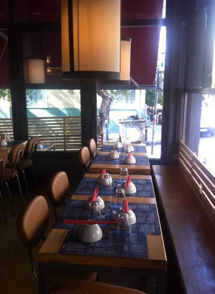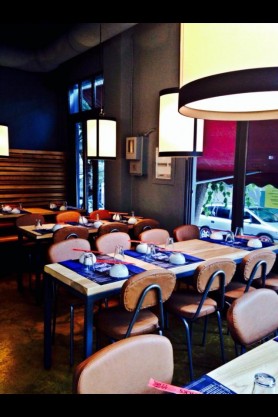 Είναι όντως blue –μπλε γκρι για την ακρίβεια-, με ξύλινα τραπέζια-πάγκους και εν γένει λιτό στιλάκι, χωρίς ίχνος φολκλόρ, αν εξαιρέσεις ένα μικρό αγαλματίδιο του θεού Ganesha που οι ταϊλανδοί τον λένε Phra Phikanet .