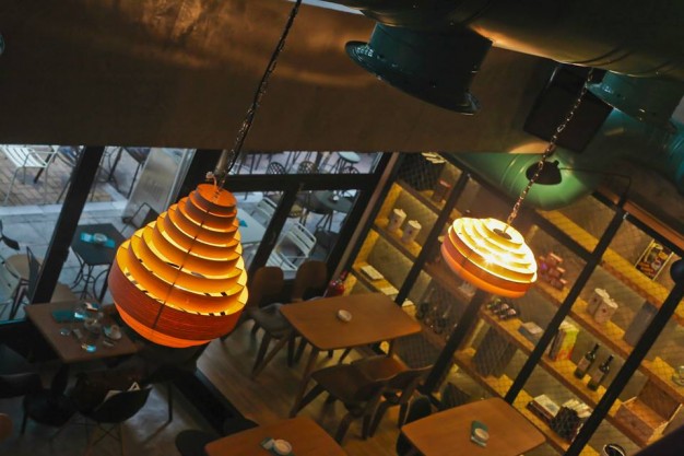 Industrial εσωτερικό, όπου κυριαρχεί το ξύλο και το σίδερο και άνετος χώρος τόσο εξωτερικά με πολλά τραπεζάκια στον κεντρικό πεζόδρομο της Καβάλας, όσο και εσωτερικά με σταντ, τραπέζια και μεγάλο μπαρ στο ισόγειο αλλά και τραπεζάκια στον επάνω όροφο!