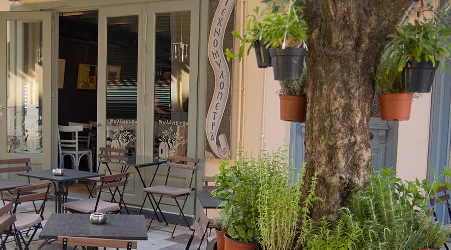 Άνετη και φιλόξενη μέσα ή έξω στον ελαιώνα του πεζόδρομου Μπενάκη, με τα τραπεζάκια της στο πιο ιστορικό σημείο της πόλης και τα ράφια γεμάτα με επιλεγμένα παραδοσιακά προιόντα και ενδιαφέρουσες εκδόσεις, σας περιμένει για το ουζάκι σας, έναν καφέ στην χόβολη ή το γλυκό σας, ένα τσιμπούσι μεταξύ φίλων ή ενα γεύμα εργασίας.