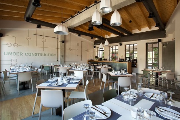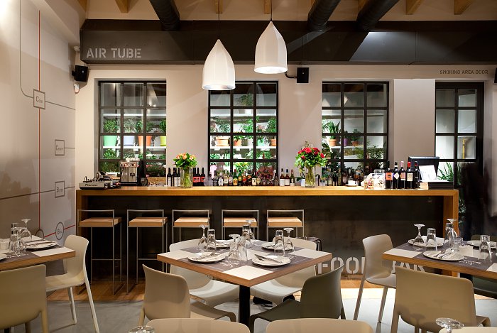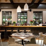 Οι αρμονικά ενοποιημένοι χώροι δύο κτιρίων συνδυάζουν την βιομηχανική αισθητική, την ζεστασιά του ξύλου και την όμορφη θέα στην πλατεία και τις γραμμές του τραίνου.