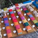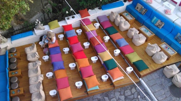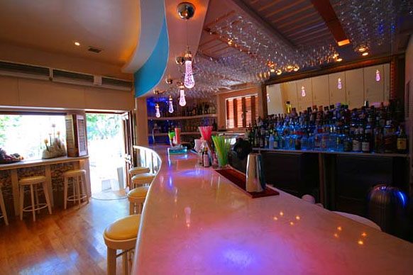 Indoors you will find a large bar serving amazing exotic cocktails, decorated in wood and stone and lit by subtle candle light.