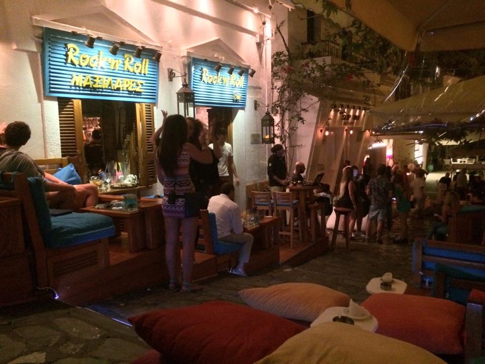 Skiathos Rock n Roll bar is situated on the Old Port of Skiathos town, under the large Plane tree on the cobbled stone steps leading up to the old town, overlooking the sea and the traditional fishing boats.