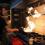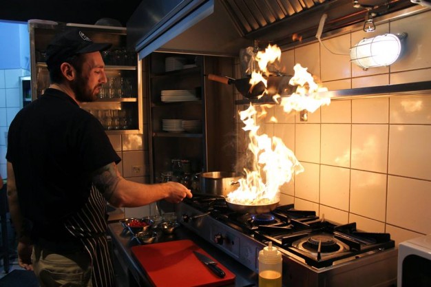 Από το μεσημέρι, η ανοιχτή κουζίνα του Ροδάκινου σερβίρει μοναδικούς μεζέδες με γκουρμέ πινελιές, όπως η τηγανιτή φέτα με ξηρούς καρπούς και μαρμελάδα πιπεριάς.