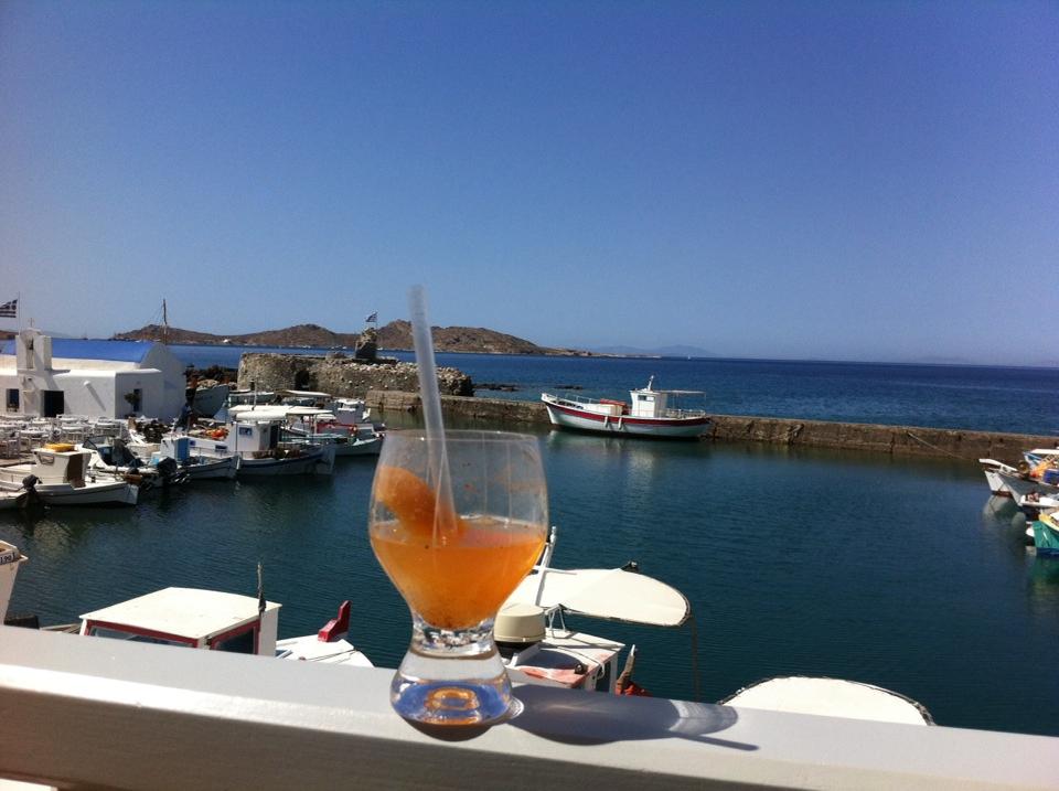 Open every day from 10am, we offer coffee, fresh juices, sandwitches, local drinks etc. At the night you can enjoy spirits or fresh cocktails listening to chill out music. And do not forget that day and night you can enjoy from high the unique view of the little port of Naoussa!